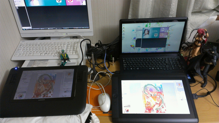 いままではCintiq 12WXを使ってましたが、筆圧感知がIntuos3相当なのと、液晶の色がちょっと凄すぎたのでカラー作業にはキツくて…